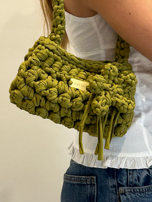 D.PUIN Handmade Crochet Bag – Green Pom Pom